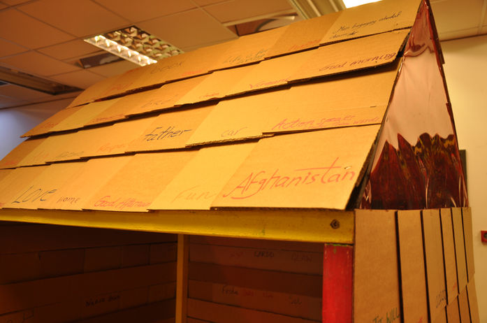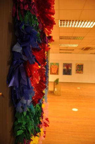The installation is a collection of work created with our community groups around the theme of landscape and colour, in response to the post-impressionist painting in the National Gallery. Matson Makers have depicted Robinswood Hill and the River Severn. GAS Projects Art School Matson (11-16 year olds) have created a colourful flower garden, landscape rocks, drip paintings and a video of Matson. The tiled house was created with unaccompanied asylum-seeking children aged 16-18 at Bridge Training, around the theme of ‘home’.